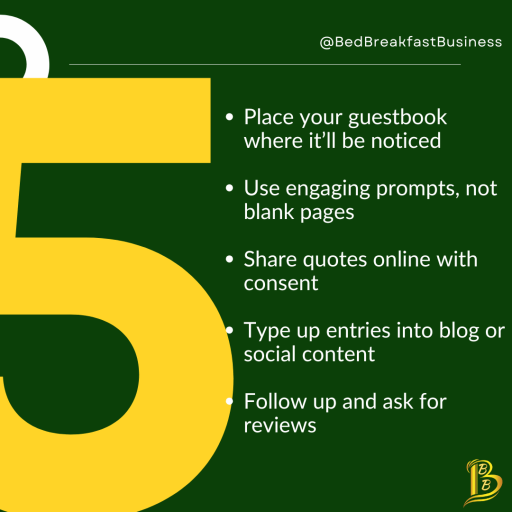 This turns your guestbook from “Nice place!” into “The scones were heavenly. The room smelled like lavender and nostalgia.”